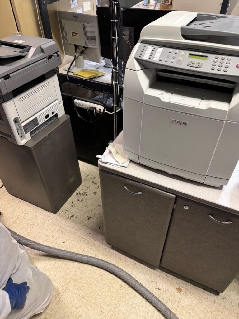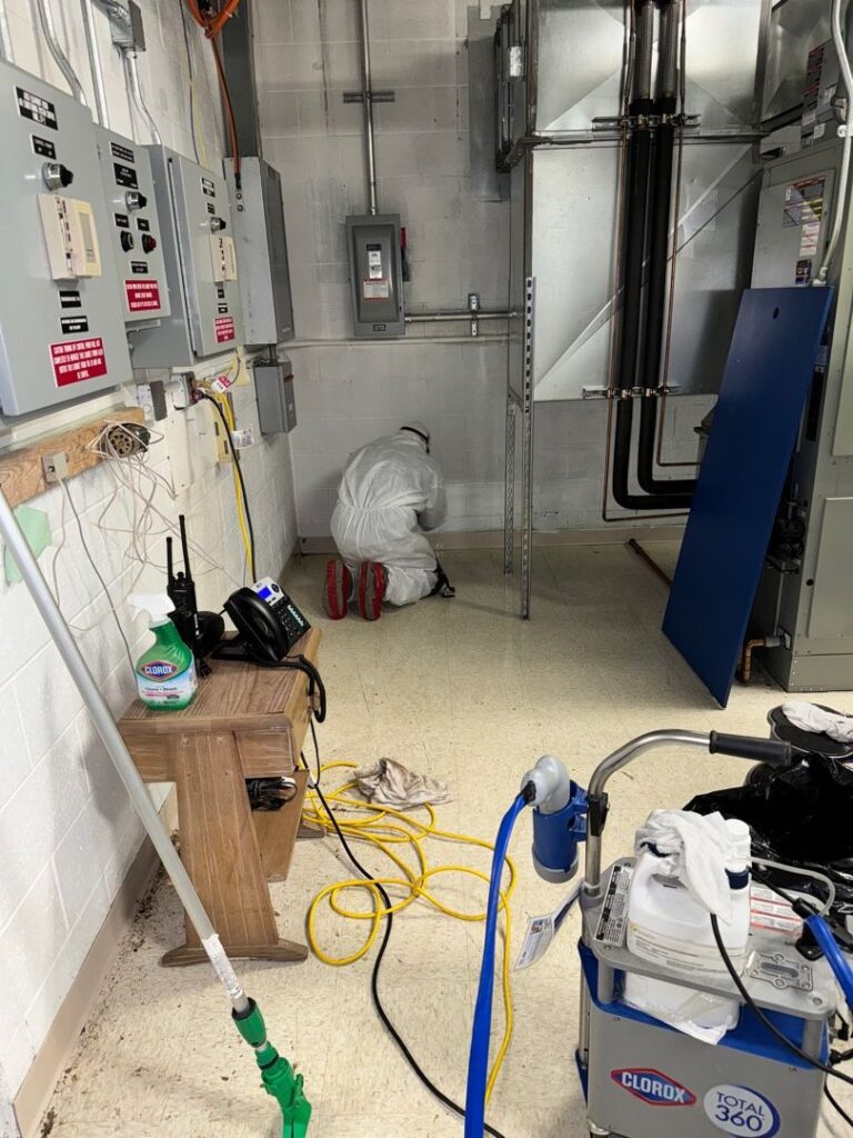 Clean, disinfect and replace all materials contaminated by rodents and other pests, carcasses of rodents and pests fecal matter and other bio-hazards caused by infestation of pests, rodents and insects.